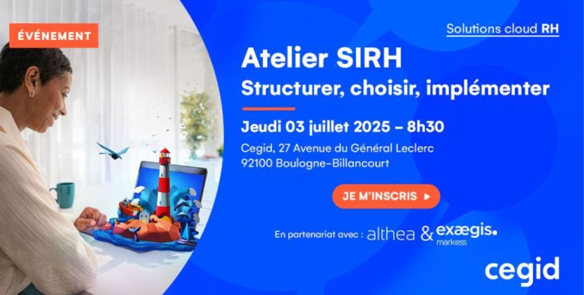 Plus que quelques jours avant la matinée exclusive dédiée aux projets SIRH organisée par Cegid le Jeudi 3 juillet à 8h30, en partenariat avec ALTHEA et Exaegis Markess.
