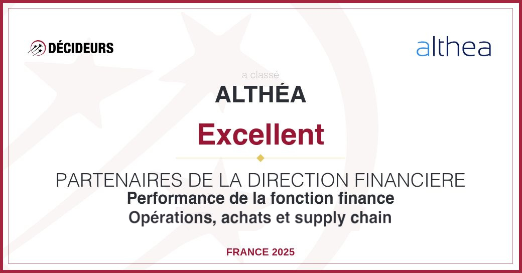 Le magazine Décideurs vient de publier son classement 2025 des cabinets de conseil. Après plus de 15 ans positionné comme leader du marché du conseil SIRH/RH (voir le classement 2024), Althéa y est doublement distingué “Excellent” en Performance de la fonction Finance et en Opérations, Achats & Supply Chain.