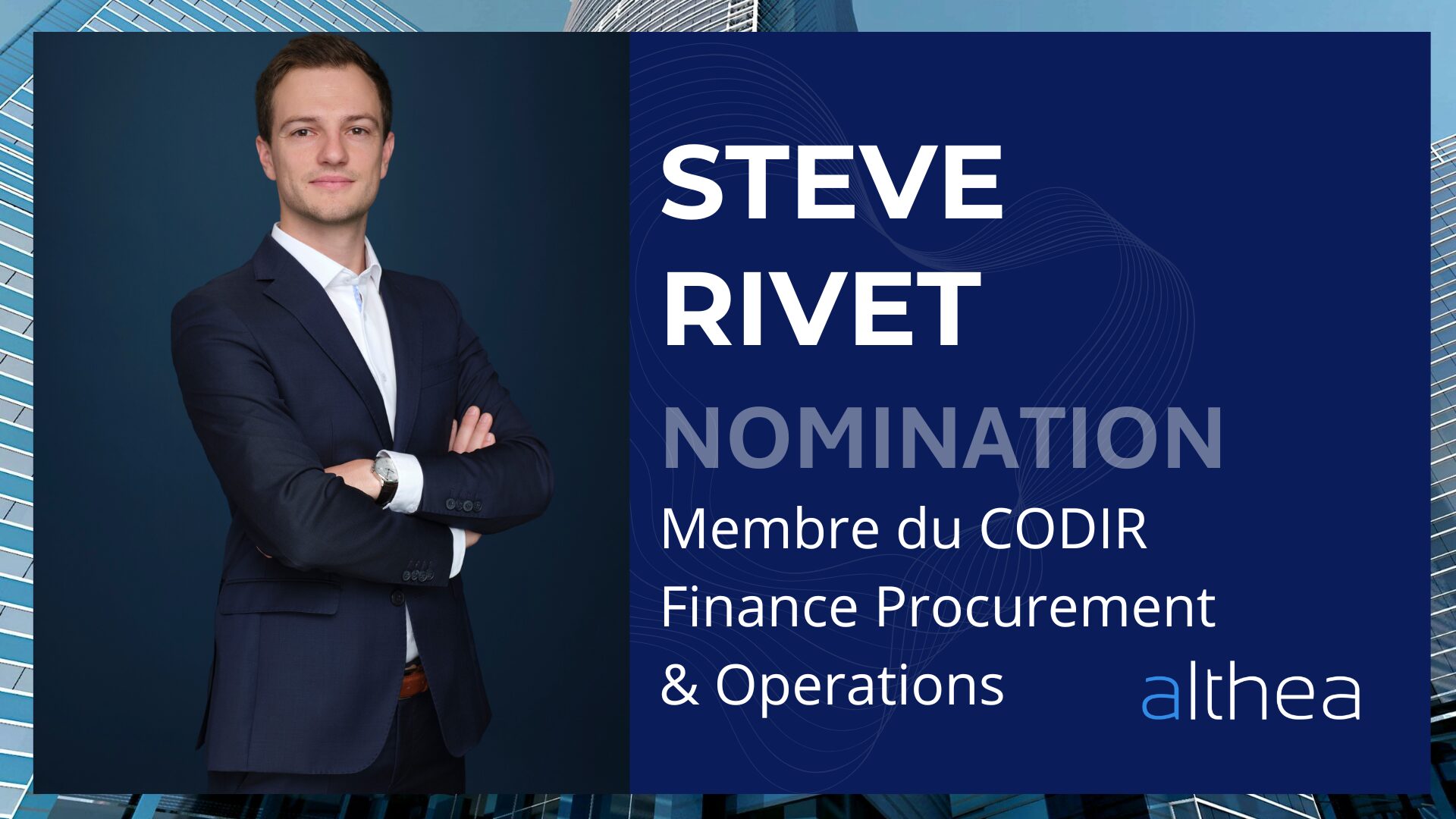 Nous sommes fiers d’annoncer la nomination de Steve RIVET au CODIR Finance Procurement & Operations d’ALTHÉA. Cette nomination vient saluer un parcours marqué par l’engagement, la capacité à structurer et à développer des offres à forte valeur ajoutée, et une approche fondée sur la co-construction avec les équipes et les clients.
